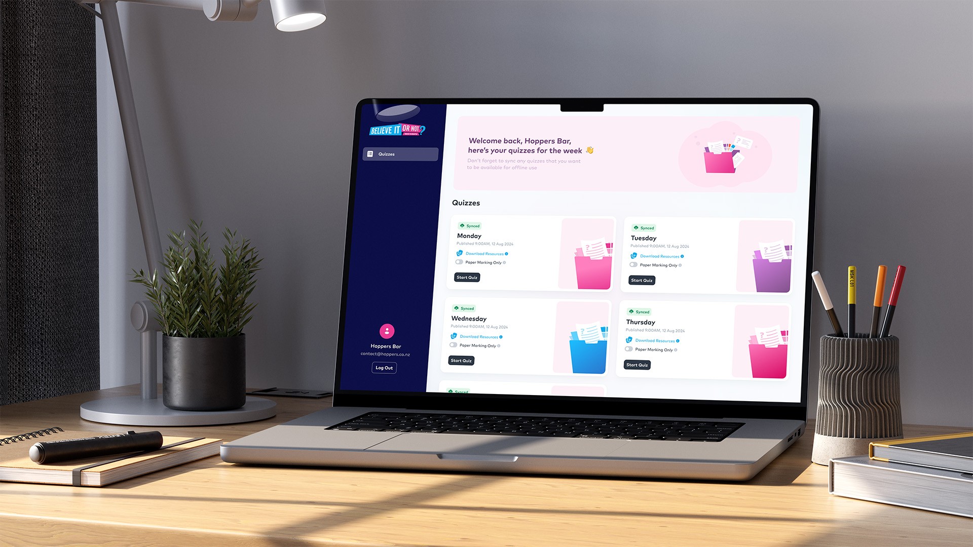 NZ's largest quiz provider, Believe It Or Not Quiz, wanted to future-proof and re-imagine their quiz platform. I worked as the primary designer on the project, creating end-to-end designs for 5 different integrated Web and TV touchpoints for 3 major user types.